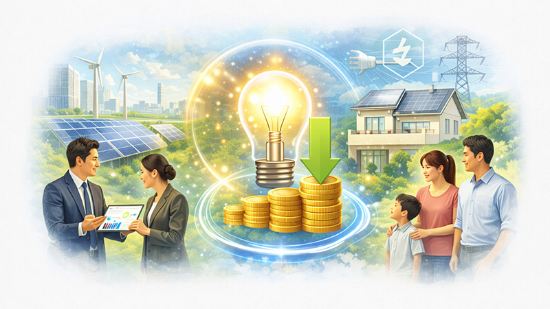 法⼈から⼀般家庭まで幅広く対応し、電気代のムダを“⾒える化”して改善をサポートします。